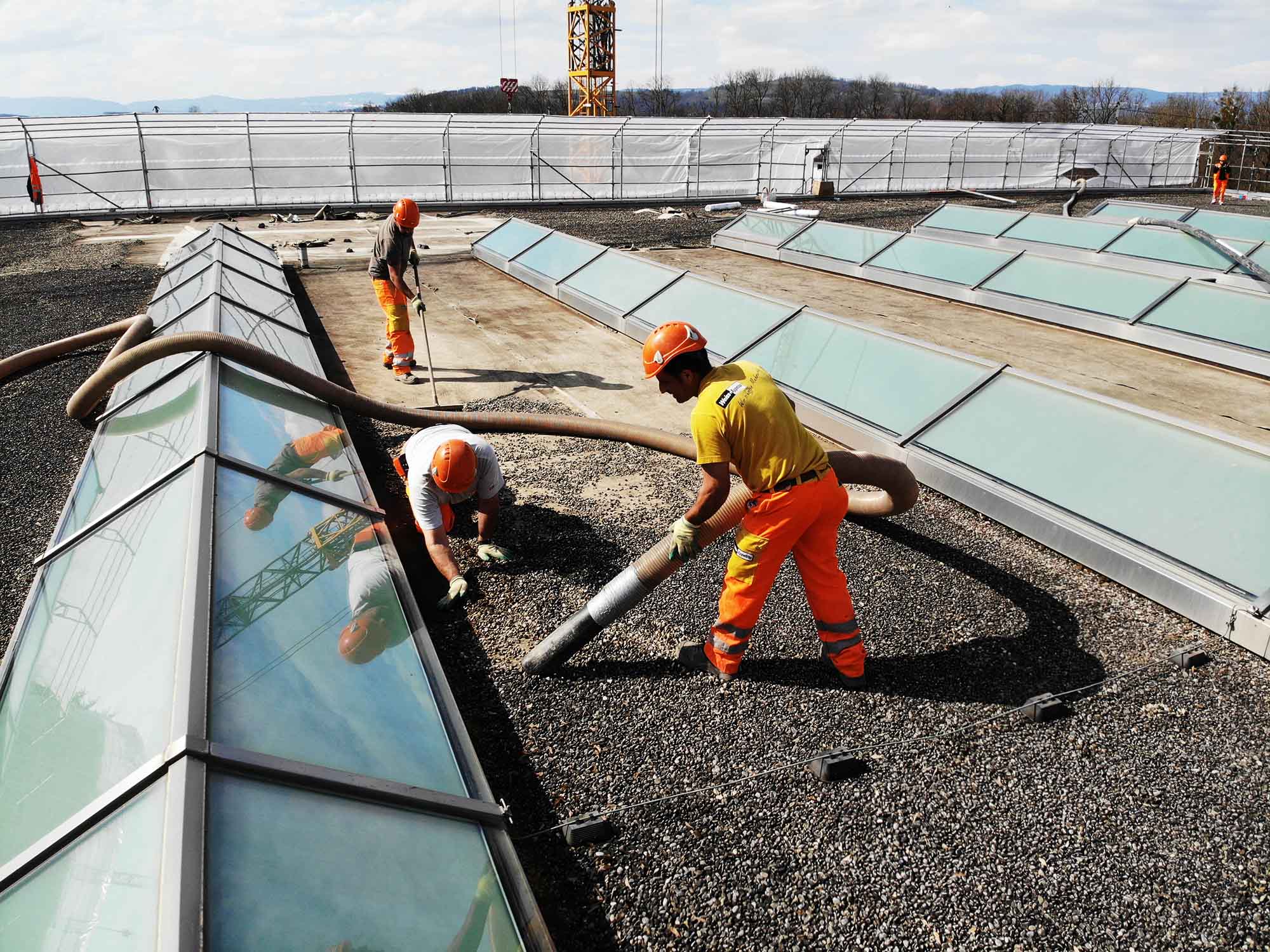 Be- und Entkiesen, Verfüllen und Begrünen sowie Reinigungsarbeiten gehören zu unserem Tagesgeschäft. Wir saugen sämtliche flüssigen und trockenen Materialien von überall ab und befördern selbst Mager- oder Sickerbeton in Windeseile. Vom Komplettaufbau ab Dachhaut bis Begrünung beraten wir Sie in sämtlichen Anliegen. Wir helfen Ihnen bei der Auswahl des für Sie passenden Substrates und kümmern uns darum, dieses schnell und gründlich auf Ihr Dach zu befördern. Sie möchten eine extensive oder intensive Dachbegrünung? Auch hier dürfen Sie sich auf uns verlassen. Der Unterhalt Ihrer Dachbegrünung gehört zu unseren Stärken! Wir sorgen dafür, dass Ihre Begrünung richtig wächst und da bleibt, wo sie sein soll.