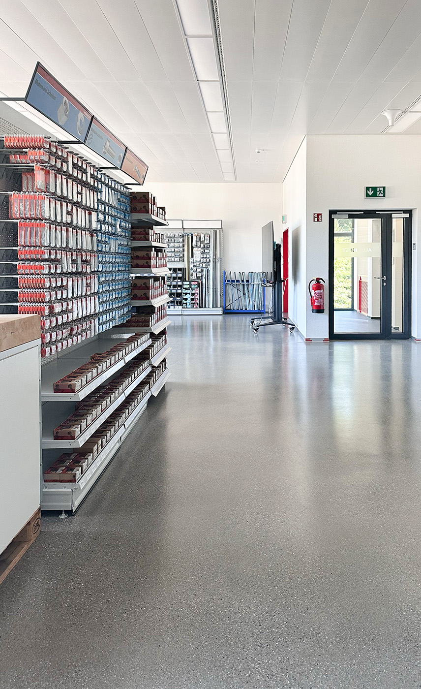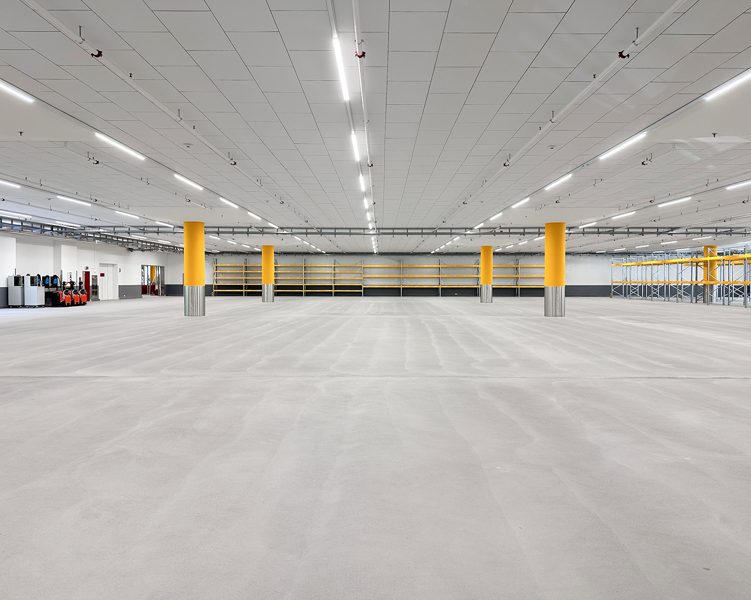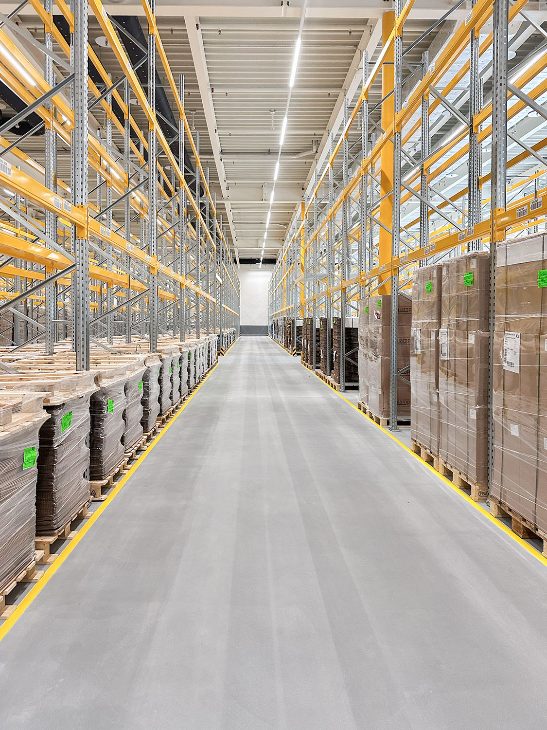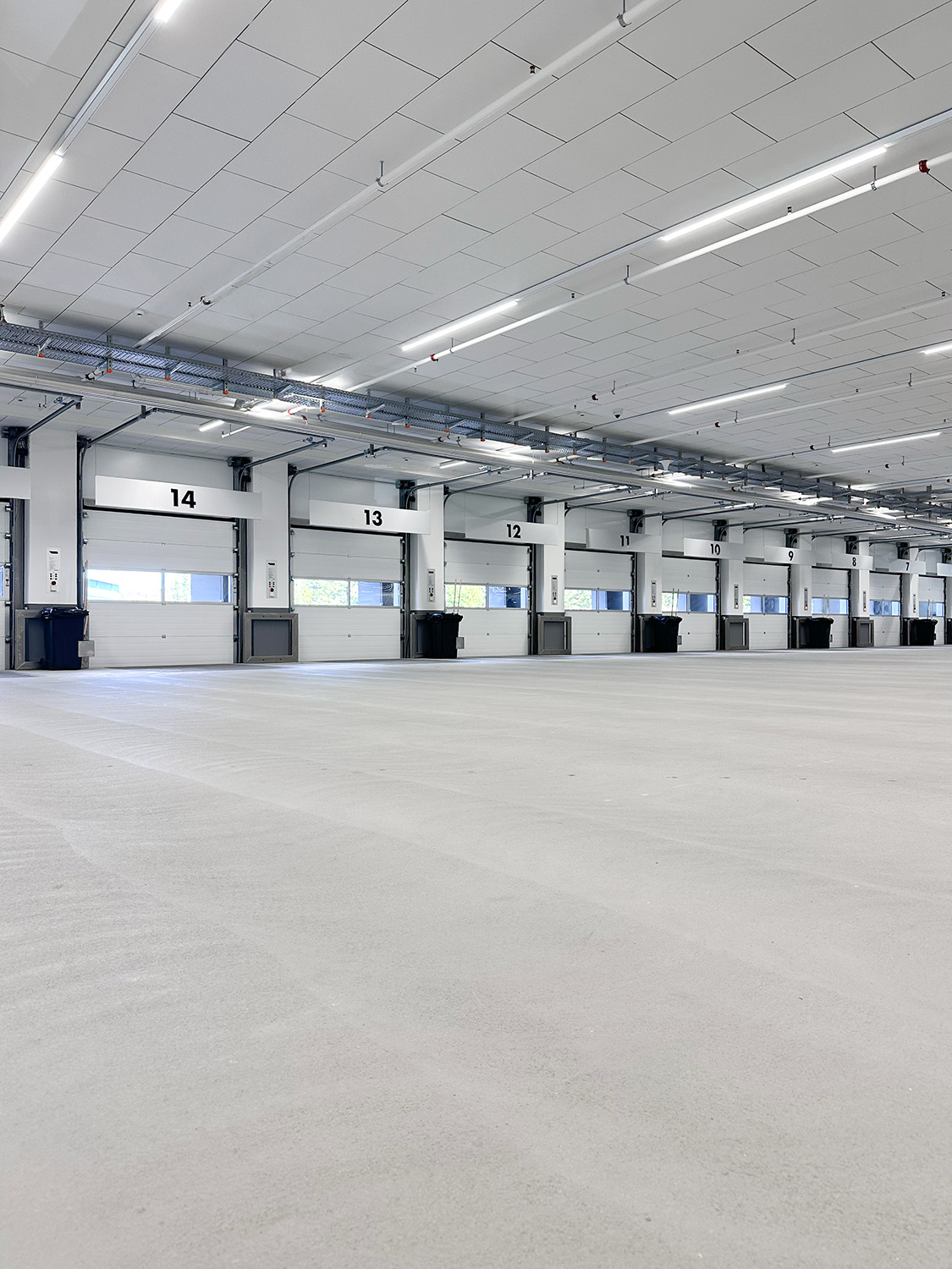 Das Logistikzentrum ist ein Ort, an dem täglich Warenströme gebündelt und verteilt werden. Genau für diese Anforderungen haben wir rund 18 500 m² Bodenfläche mit Tanarit ML2000 ausgestattet. Der Belag ist auf die hohen Belastungen des Logistik-Alltags ausgerichtet und schafft eine zuverlässige Basis für den Betrieb.