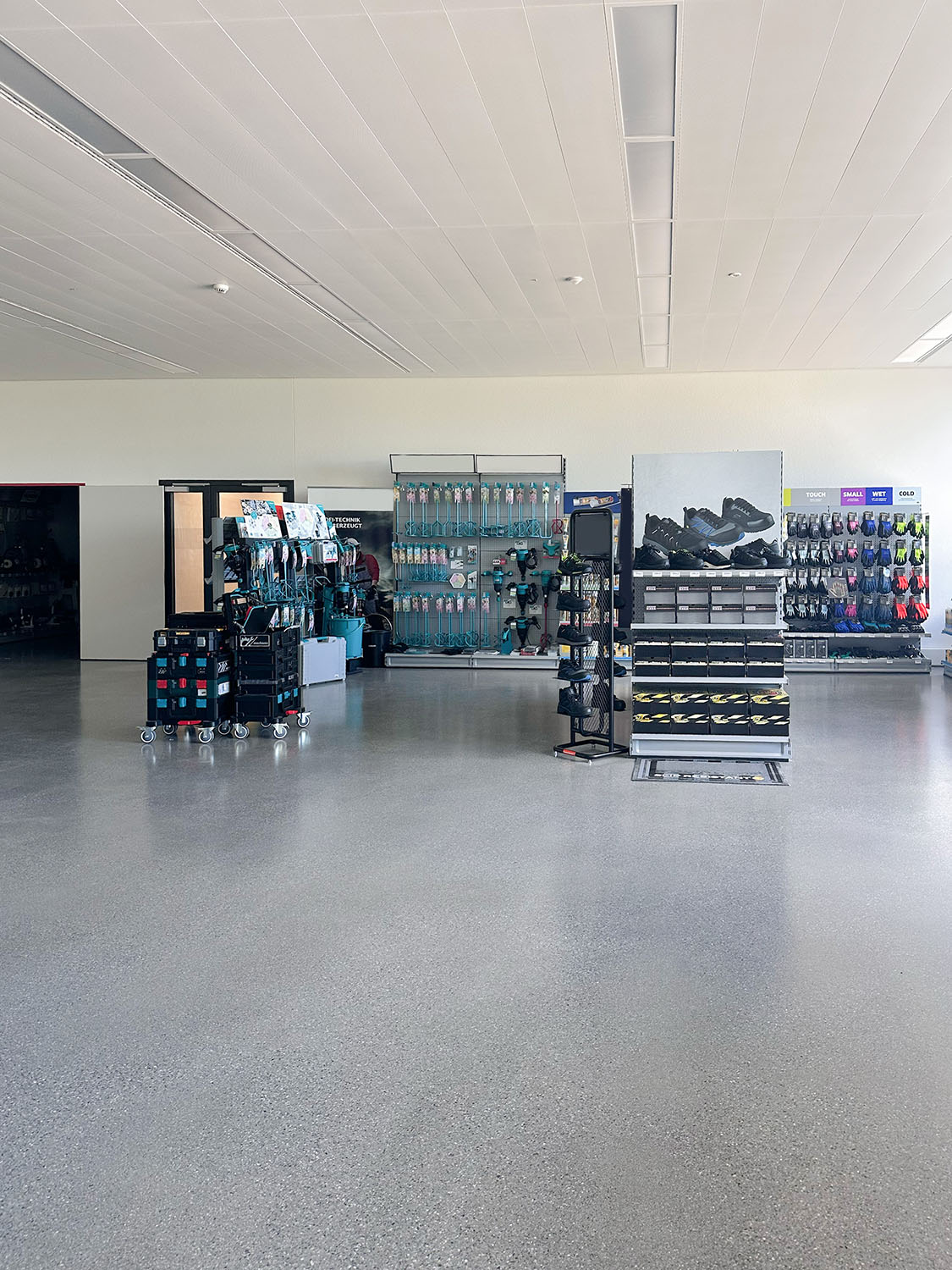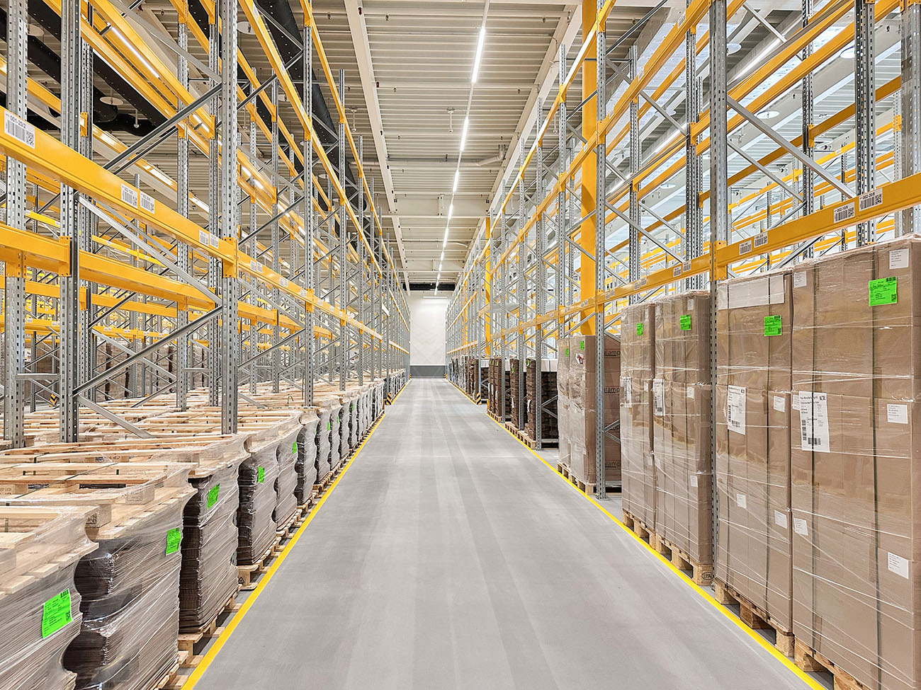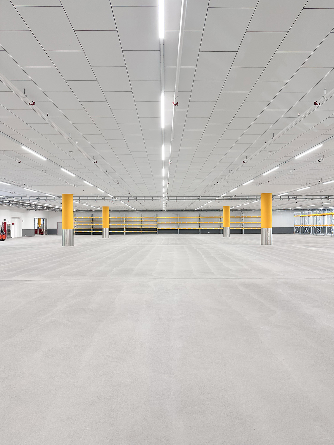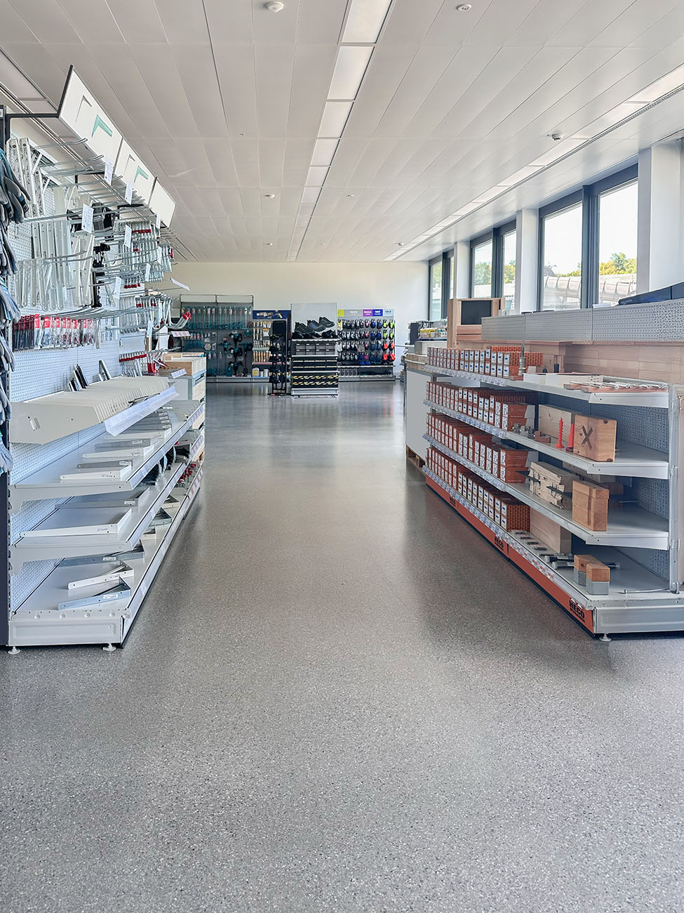 Das Logistikzentrum ist ein Ort, an dem täglich Warenströme gebündelt und verteilt werden. Genau für diese Anforderungen haben wir rund 18 500 m² Bodenfläche mit Tanarit ML2000 ausgestattet. Der Belag ist auf die hohen Belastungen des Logistik-Alltags ausgerichtet und schafft eine zuverlässige Basis für den Betrieb.
