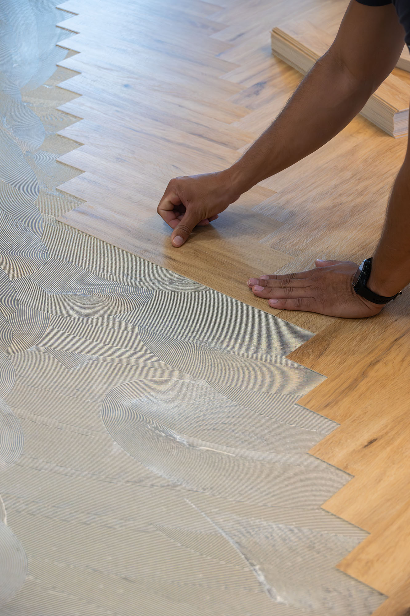 Der im Berner Projekt eingesetzte Vinylboden in Fischgrätoptik verleiht den Räumen einen Hauch von Exklusivität und sorgt für eine warme, einladende Atmosphäre. Gleichzeitig profitieren die Mitarbeitenden von der gelenkschonenden Trittschalldämmung und der angenehmen Haptik, die den Arbeitsalltag komfortabler macht.