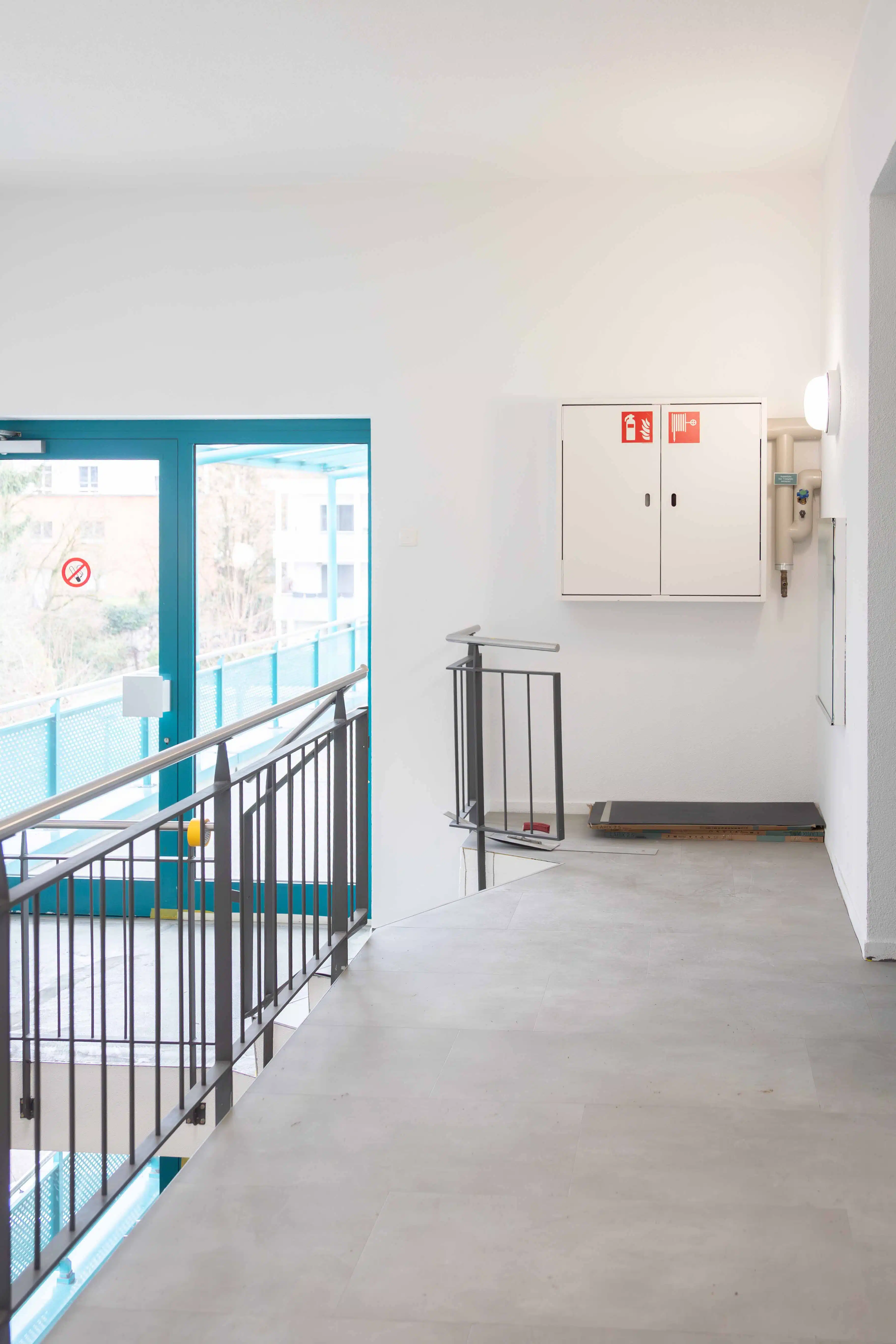 Bei diesem Projekt wurde der Boden vollflächig verklebt. Diese Verlegeart sorgt dafür, dass der Boden eben liegt, keine Hohlstellen entstehen und der Belag auch bei stärkerer Nutzung nicht verrutscht. Gerade bei grossen Formaten in Fliesenoptik wirkt das Erscheinungsbild ruhiger und hochwertiger, wenn der Boden vollflächig mit dem Untergrund verbunden ist.