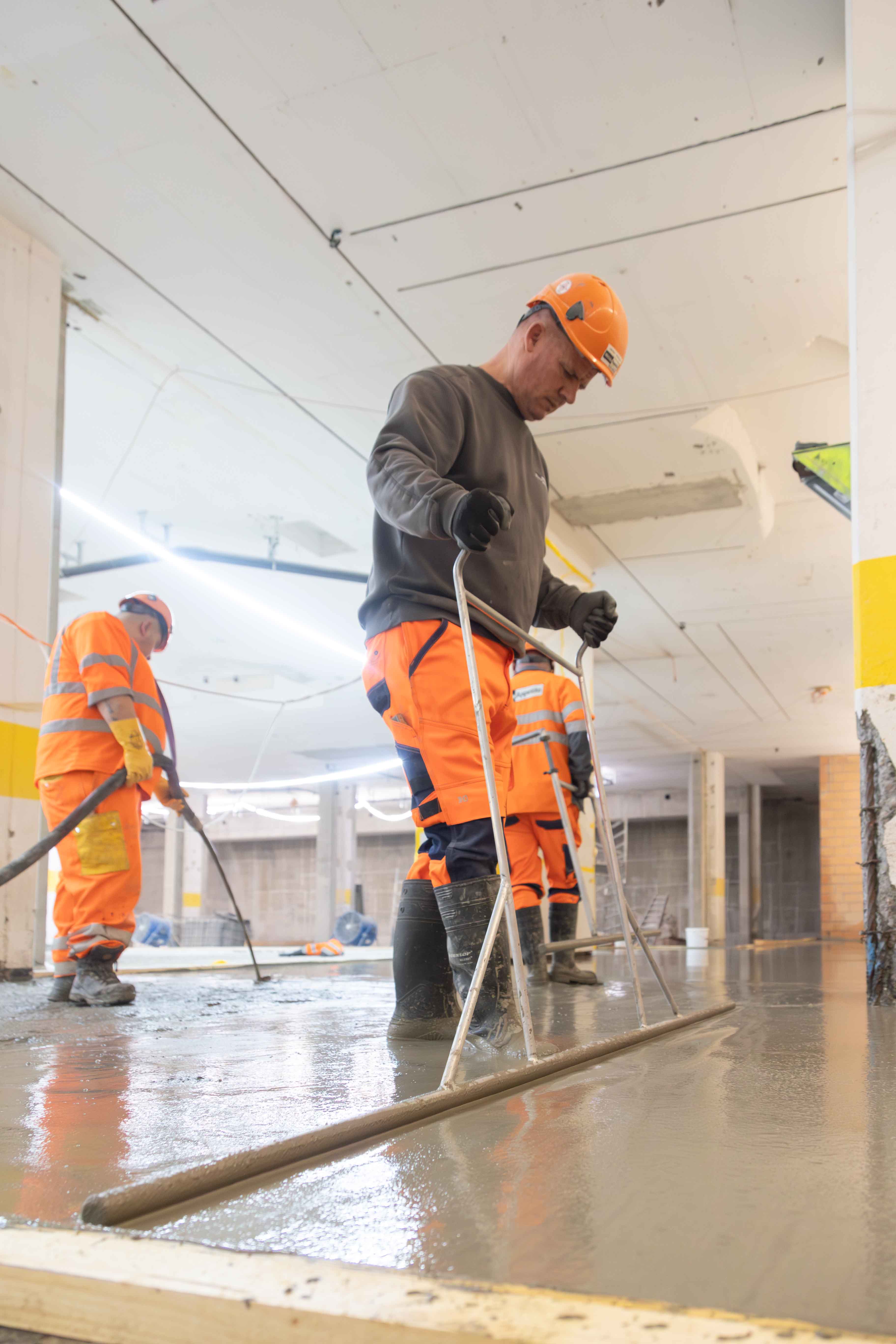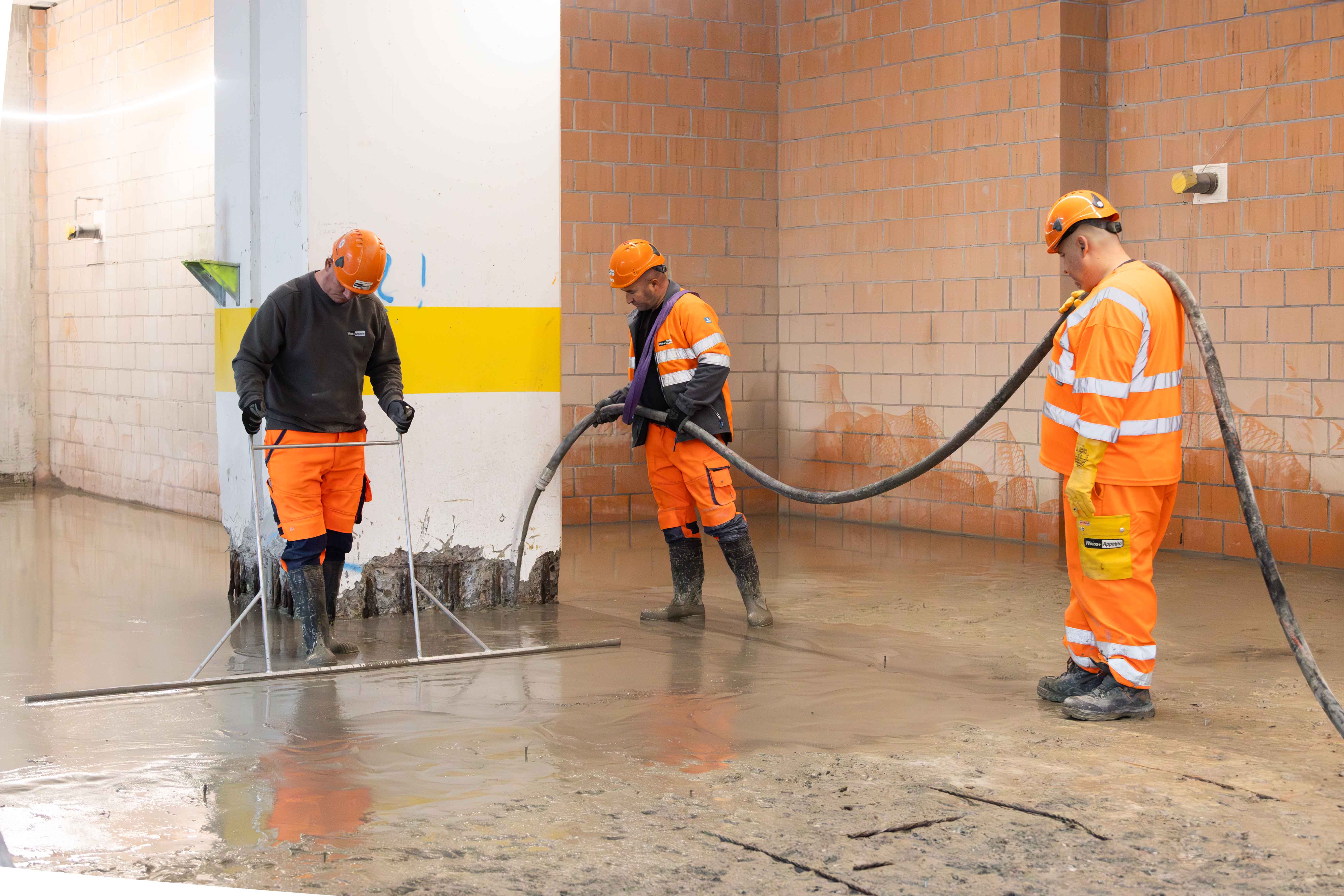 Abbiamo lavorato un totale di circa 190 tonnellate di materiale su un'area di circa 2370 m², creando una superficie omogenea, liscia e ad alta resistenza. Il fattore decisivo in questo caso non è stato un «bel pavimento», ma una funzione chiara: la superficie è diventata la base definita per l'isolamento e tutte le strutture successive, in modo che gli operatori successivi non dovessero prima livellare o apportare miglioramenti.