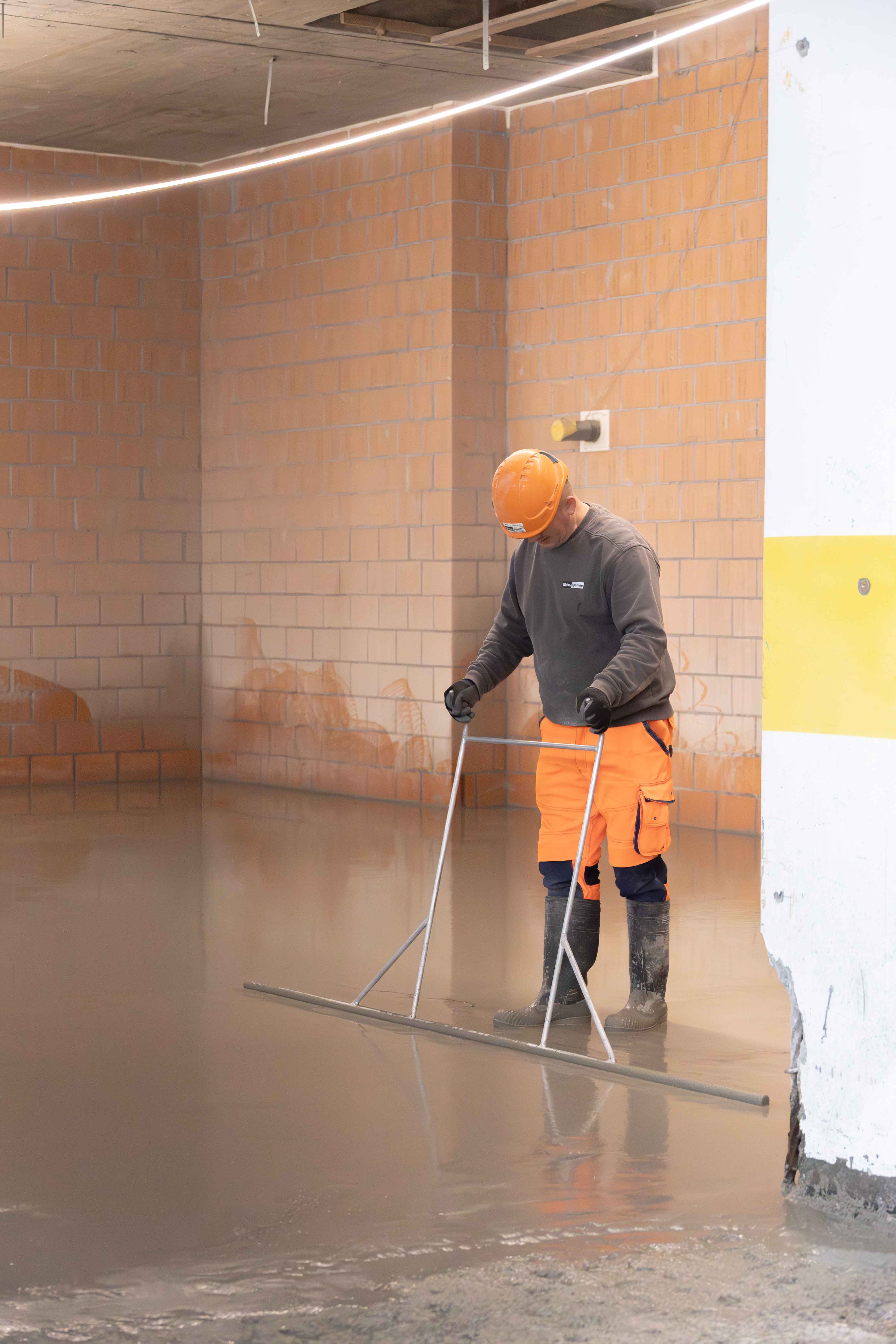 Tra novembre 2025 e gennaio 2026 abbiamo quindi creato una nuova superficie di livellamento definita. Su questa base, gli operatori successivi possono installare successivamente l'isolamento, i pannelli di distribuzione del carico e la struttura finale, come il calcestruzzo duro o il terrazzo, in modo pulito e senza ulteriori correzioni.