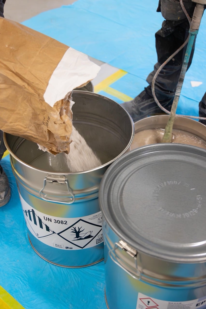 Per questo motivo sono stati definiti requisiti chiari: un design senza giunture, resistenza agli agenti chimici e una struttura sistematica che funzioni in modo affidabile a lungo termine. Quarzo colorato CREASOL è stato scelto come sistema sostitutivo, anche grazie all'esperienza positiva del pavimento precedente e all'obiettivo di ripristinare questo livello di qualità.